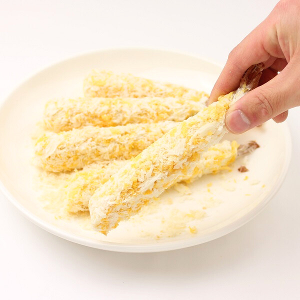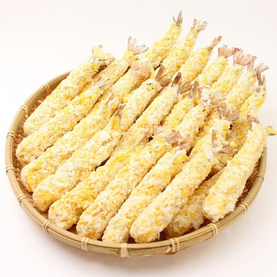 | 原材料表示 | 衣(パン粉、小麦粉、食塩、粉末植物油脂、小麦たん白、植物油脂)、えび、食塩/加工でん粉、焼成Ca、増粘剤(グァー)、名カロチノイド色素、調味料(アミノ酸)、pH調整剤、膨張剤、乳化剤、香辛料抽出物、(一部にえび・小麦を含む) |