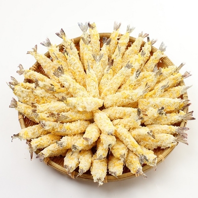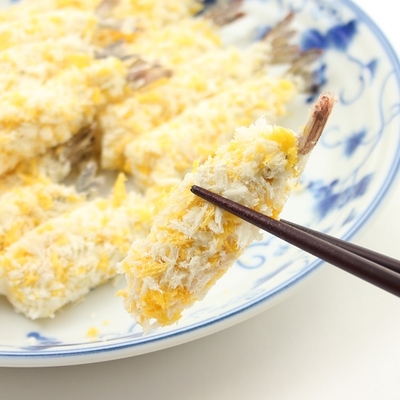 | 原材料表示 | 衣(パン粉、小麦粉、食塩、粉末植物油脂、小麦たん白、植物油脂)、えび、食塩/加工でん粉、焼成Ca、増粘剤(グァー)、名カロチノイド色素、調味料(アミノ酸)、pH調整剤、膨張剤、乳化剤、香辛料抽出物、(一部にえび・小麦を含む) |