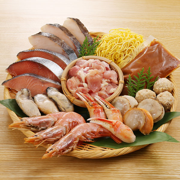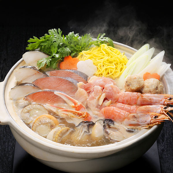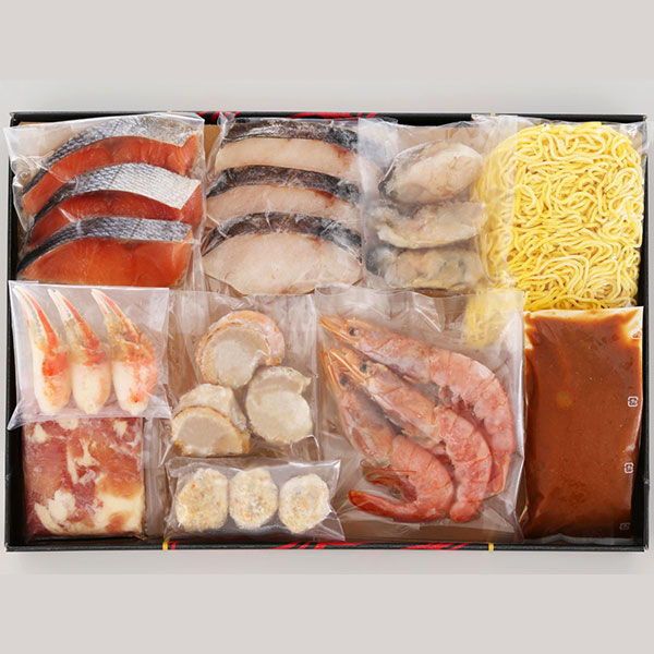 | 原材料表示 | ●味噌タレ[味噌(国内製造)、しょうゆもろみ、砂糖、魚醤、醤油、米発酵調味料、おろしにんにく、味噌加工品、チキンエキス、おろし生姜、酵母エキス/調味料(アミノ酸等)、(一部に小麦・乳成分・大豆・鶏肉を含む)] ●ラーメン[小麦粉(国内製造)、でん粉、食塩、小麦たんぱく、卵白/酒精、ソルビット、かんすい、焼成カルシウム、加工デンプン、着色料(ビタミンB2)、(一部に小麦・卵を含む)] ●鶏もも肉(北海道産)、(一部に鶏肉を含む) ●秋鮭(白鮭)(北海道産)、(一部にさけを含む) ●真だら(北海道産) ●アルゼンチン赤えび(アルゼンチン産)/酸化防止剤(亜硫酸塩)、(一部にえびを含む) ●ボイル帆立[帆立貝(北海道産)] ●ボイルずわいがに爪[ずわいがに(カナダ又はロシア産)、(一部にかにを含む)] ●マガキ(広島県産)(加熱調理用) ●とりごぼうつみれ[魚肉すり身(外国製造)、鶏肉、野菜(たまねぎ、ごぼう、人参、しょうが)、鶏ひき肉、パン粉、粒状大豆たん白、全卵、上白糖、小麦粉、食塩、発酵調味料、魚介エキス、白みそ、調味エキス/加工でん粉、ソルビット、調味料(アミノ酸等)、リン酸塩(Na)、(一部に卵・乳成分・小麦・大豆・鶏肉を含む)] |