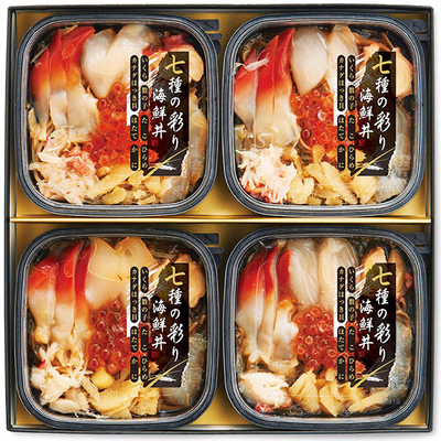 | 商品情報 | 海鮮漬(数の子、ずわいがに、ひらめ、いくら、たこ、ほたて、カナダほっき入り松前漬) 100g×4パック 北海道名産の松前漬に、数の子、ずわいがに、ひらめ、いくら、たこ、ほたて、カナダほっき、7種の海の幸を贅沢にちりばめました。混ぜてご飯にかけて海鮮丼としてもお召し上がりいただけます。 |