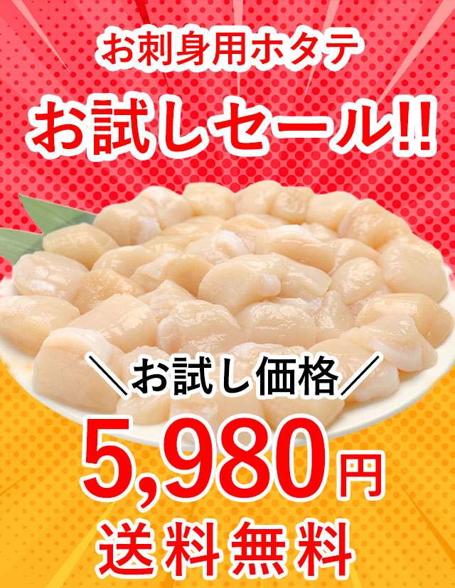 | 商品情報 | ほたて貝(貝柱)生食用 内容量:600g 産地:北海道 加工地:北海道 |