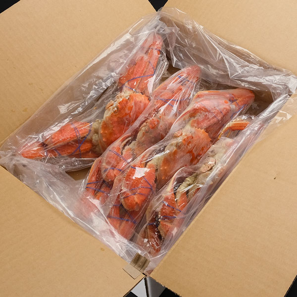 | 保存 | 冷凍 表面の氷を流水で洗い流し、甲羅を下にして「あおむけにして」ラップや袋に入れ、冷蔵庫で約半日を目安に解凍してください。 ※解凍しすぎると風味が落ちるため、8割ほど解凍された頃が食べ頃です。 ※溶けた水が出るため、新聞紙やキッチンペーパーで包んでから、お皿やトレイに乗せると冷蔵庫が汚れにくくなります。 |